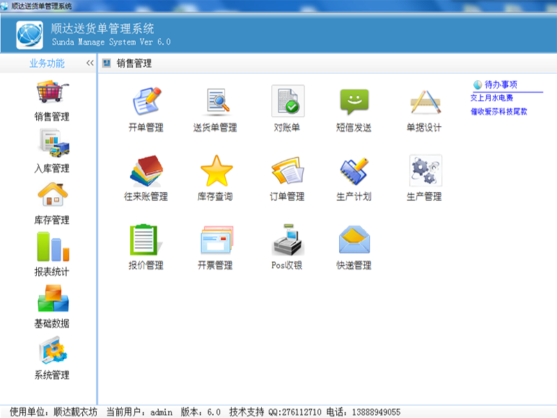 琦順達送貨單打印軟件不僅僅集成了送貨單管理、產(chǎn)品管理、客戶管理、數(shù)據(jù)分析、圖表分析等常見的送貨單打印管理功能,還集成了商品進銷存管理、應(yīng)收賬款管理、應(yīng)付賬款管理、銀行收支管理、支票打印管理、快遞單打印等等功能,在管理好送貨單的同時,您還可以管理好您的產(chǎn)品進銷存情況以及客戶欠款情況。